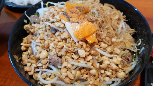 Honestly, the food itself was yummy. It had a lot of garlic which I enjoyed. However the entire experience was ruined because the workers scammed us. We ordered the Bun Cha for 60,000 dong. The lady then proceeded to bring us out the meal for a more expensive Bun Cha, us not realizing because of course we assumed we were getting what we ordered, ate the food. She then brings out other food and we say oh thanks we didnโt order this, then in Vietnamese we tell the lady we didnโt order this and she says no free, no pay, free. So weโre thinking very nice weโre foreigners so itโs always nice. When my friend orders a Fanta she gives him 2 sodas as he says no only 1, then didnโt drink the other as they tried to charge him after many times of saying no only 1. When we get the bill itโs about 150,000 dong more than it should be. My friend speaks Vietnamese (very well heโs had no issues communicating with every other person) he has a dispute and the lady doesnโt โunderstandโ him even though she was able to the entire meal before hand. So we are saying no weโre not going to pay for anything you brought us out. She is yelling at us then walks away and sends another lady over who then proceeded to tell us we ordered something other than we did. We very obviously did not as we purely went for bun cha. We tried to communicate over translate as they couldnโt understand my friend who very clearly spoke Vietnamese and they refused to even look at the phone.