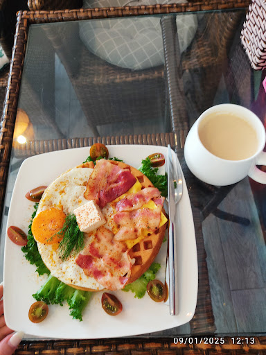 At noon when I came to the cafe there were no avocados so I had to take a bacon and egg waffle, it was good.