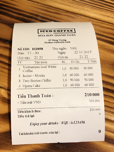 The price is rather expensive, especially given the small portions. 40,000 dong for a few ounces/milliliters of coffee. The club sandwich didn't have bacon, instead it had a strange kind of ham and cucumbers.