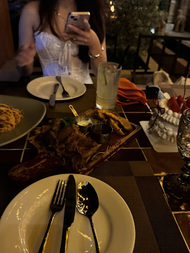 Read moreGreat atmosphere and aesthetic definitely recommend coming here for photos more than food. The service here is not bad but also nothing on the good side. Waiters messed up orders and bringing us the wrong orders, even though there were only 4 tables including ours. They forgot one of our drinks but thats okay. The food here is a huge disappointment for us. We ordered a steak, chicken and mushroom soup and other food aswell. they all taste fine, the steak we ordered was medium rare but when we cut open the steak it was raw so we ask the chef to re-do it. When it they gave us back the plate of steak it was sadly still very raw .. we sent it back again and this time it was better ( less raw. ) Also the steak was chewy too. The chicken was also raw. The mushroom soup. If you want to eat mushroom soup that has the texture of someone chewed the mushroom and spit it back out this is the best place for you! Pizza is great! Its the best thing we ate. Everything else we ordered was fine, not...