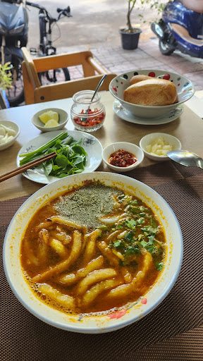 For details, I refer to the common things that are served with the main dish in Phở Bò restaurants in Vietnam. Most of the places would have small baskets on the tables in which you find chili sauce, hoisin sauce, lime wedges, etc, and in most places, these items would stay on the table throughout the whole day without being cleaned. Just imagine how many times these items are touched by different people before you hold them. This is the case even in the most famous Pho Bo restaurant of Nha Trang Phở Hạnh Phúc (https://maps.app.goo.gl/9b4odhxbTvo6yuHe9). However, in this restaurant, it was not the case. Each item is put on the table whenever a guest sits on it. Everything is clean. The plastic sauce bottles, small plates with pickled onions, fresh green onions, herbs, chili sauce, and fresh bread. All neat. A perfect presentation. You can enjoy the food now. The food: I had beef stew which is difficult to find in Nha Tran. I sometimes crave it and have difficulties finding a place to have it. Sincerely, it could be better. Maybe just a little more beef and instead of french fries boiled potatoes would make it look and taste richer and tastier. French fries in a beef stew which costs 100k sounds cheap. And maybe a bit more carrot and onion.