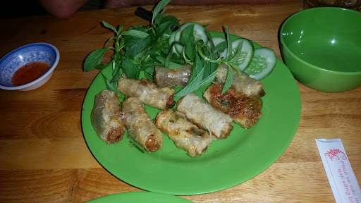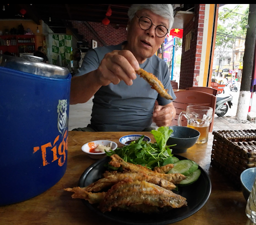 The fresh-tasting 2L draught beer arrived in a mini keg and was perfectly cold! The keg was kept chilled in an ice bucket, allowing us to slowly enjoy the delicious, cold beer alongside the crispy, deep-fried, sardine-sized fish called Cá trứng chiên giòn (crispy fried capelin) for 90k dong. The prawn spring rolls were okay, but a bit salty and oily. I would skip the freshwater eel; while it tasted good, it was small and bony, requiring good...