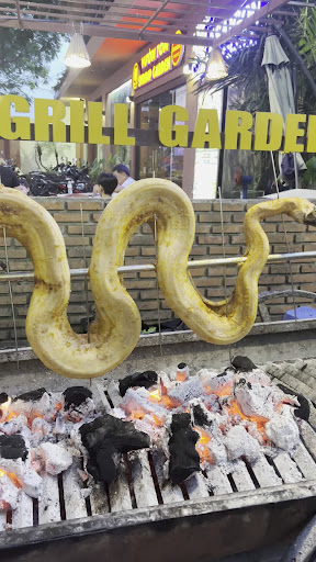 Read moreНачалось все классно: накануне я подошла и забронировала столик. У входа встретил русский (наверное) парень, быстро записал мою бронь на завтра, поэтому не было никакого языкового барьера, всё было легко и приятно. Когда пришла сегодня, этот же парень меня узнал и сразу проводил за стол, что меня восхититило (профессионализм и память). Народу на буфете уже был полный зал. На каждом столике горит мангал, чтобы ты мог сам себе пожарить понравившиеся куски. Набрали в буфете ракушек, устриц, мидий, тунца, лягушку, рулетики с говядиной, остальное уже не влезло :)) Дым от соседнего мангала периодически валил в мою сторону так, что я сдерживала кашель. А дым от нашего мангала, соответственно, попадал на столик с другой стороны. В общем, дышать нечем, душно и гарь. Но интересно. Ещё одна проблема: не знаешь, как готовить. Спрашивали у соседей, чтобы понять, готово или нет. Официанты подходили несколько раз, но так как они ничего не объясняли, а убрали тарелки, ставили соус, сами перевернули лягушку, кальмара и что-то ещё, а потом ушли к другим столикам, то мы в итоге все равно не знали, как понять, что еда готова или нет. И не удобно то, что вьетнамцы, которые обслуживают по ту сторону шведского стола / буфета, не могут понять тебя, а ты - их. Поэтому не было понятно, нужно брать просто ракушек или к ним что-то докладывать, и что к чему подходит. В итоге часть наших устрици маленьких ракушек повытекали в мангал. В фуршетный стол также входят и некоторое количество готовых блюд нарезка для салатов и десерты, а также жарятся какие-то прикольные лепешечки с травами и фаршем. Первая лепешечка залетела на ура, прям очень понравилась, а вторая почему-то оказалась не очень вкусной, как будто совсем другой на вкус. Может, потому что я не знала, сколько соуса и зелени на нее добавлять (это тоже делаешь самостоятельно). Также у входа стоит большой мангал, на котором готовили крокодила, а после стали жарить питона. Поскольку народа очень много, то у стола с блюдами очередь. Когда приготовили крокодила, образовалась очередь и туда, и там мне дали кусочек крокодила размером чуть меньше спичечного коробка (я не шучу). Когда я удивилась и попросила ещё, на меня гаркнула женщина, которая помогала нарезать крокодила, и жестом показала, что за мной ещё стоят желающие. Это было неприятно. Позже стали жарить питона, но ждать пришлось долго, и я решила, что уже наелась. В общем, впечатления смешанные, но мне нравится идея буфета - попробовать все и понемногу. Самой готовить мне не понравилось, когда не знаешь как это делать, но в качестве развлечения на один раз меня вполне устроило. И крокодила попробовала, и лягушку, и...