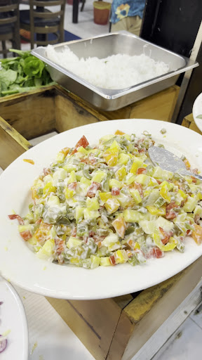 Read moreШведский стол как в отеле 3 звезды, не больше. Было достаточно много морепродуктов, но многих позиций не было, в том числе и тех, что были заявлены в меню и были на фотографиях других посетителей: не было никаких суш и роллов, не было крокодила (специально спрашивала и шла из-за него!), не было страуса, не было голубя (кто-то писал в отзывах что был), не было никаких крабов-лобстеров и тд, не было морских ежей, только креветки одного вида и размера. Рыбы было мало и не оч вкусная, много костей. Стейка лосося не было, только головы и, возможно, плавники. Из напитков дали пиво и маленькую бутылочку пепси на двоих (не безлимит). Вода платно! Из фруктов только бананы и драконфруты 😂😂😂 самые дешёвые фрукты. Из сладкого - банан в кляре и рисовый пудинг 😂😂😂 Никто не подходил и не спрашивал, нужна ли нам помощь в приготовлении или ещё в чем-то. Очень шумно, потому что многих привозят автобусами и они сильно шумят когда выпивают. Стоимость 250 донгов на человека. Если бы покупали сами то, что съели тут (а готовили мы все равно сами), то еда обошлась бы нам 100 донгов на человека максимум, потому что все продукты максимально простые и дешёвые. P.S. Я ещё ничего, а парень уже 2 дня из туалета практически...