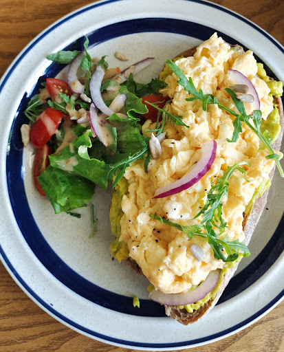 Salads and poke bowls are very large, definitely sufficient for dinner. Egg coffee was the best I've tried. Stuffed sweet potato is delicious. Home made granola, fresh fruit and yogurt - real unsweetened yogurt, without a ton of sugar - was another great find.