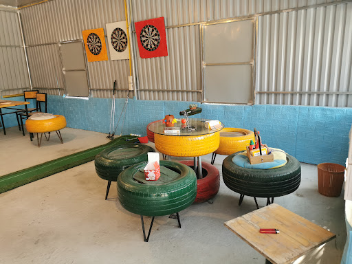 They have free board games and the space is made and decorated with recycled materials and also use bamboo straws for the drinks.