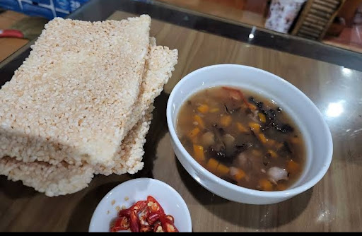 We loved the big crispy rice crackers with the mushroom carrot gelatinous soup !