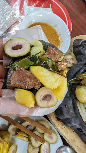 Read moreFar out!!!! This restaurant is not to be missed when you are in the area and definitely worth a trip even if staying out of town. I heard the barbecue goat was excellent so I ordered that and was super impressed with the presentation, flavor and the way they teach you to put it all together and dip the little rice paper wraps in the special sauce, so fantastic and so many delicious Vietnamese herbs to go with it. The spinning chicken was also the best chicken that we had in Vietnam, so tender and juicy. Also not to mention the fantastic service and the beautiful fruits that were presented to us complementary at the end of our meal. Not sure if everyone gets this royal service but we were also treated to a variety of "Happy Waters" at the end of our meal which were ultra strong spirit-based liqueurs with honeycomb and another with lychee, totally...