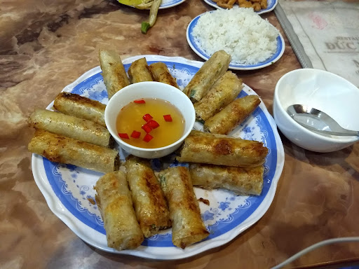 Read moreI ate here 3 times so far and I think it's a great place. I came at first because they offer a free 450ml Hanoi beer and a banana just for eating there. Every time I ordered something for 50k, and never was I able to finish it. The portions are huge! Nice family, and they always charged the correct price at the end. A couple times I ordered another beer and the cost is 15k per beer. The bathroom is way back in the house, so it's kind of funny to walk through all the doors to get way back to the bathroom. Below I attached a picture of a small order of pork spring rolls. Giant portions for the great prices...