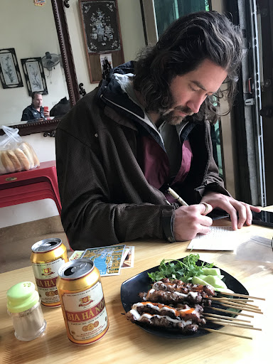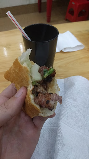 Read moreDelicious! You have to stop by here if you come To Ninh Binh proper. The little sausage sticks are small but delicious! We paid 5K a stick, best bargain ever. The bahn mi is the way to go though. Bread is toasty, you get the little meat guys in the bun and they have tasty sauce. Like that pick of me writing a review??...