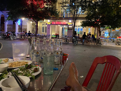 if you are looking for a tourist free authentical chill out place frequented by locals in Ninh Binh City, there you are. They serve a fresh and cool Hanoi beer on draught. I recommend to order it by glass (một cóc nữa) not in a pitcher, for maximum freshness. The kitchen provides a big selection of snacks with the beer but also full menu of main courses. Crunchy sesame crisp ( bánh đá ) hot or cold sausages wrapped in leaves, the cold ones are nêm chua. They have deep fried tofu ( đau phu) with fresh herbs and smelly shrimp sauce (mắm tôm ) and also fried rice co'm rằng or fried noodles with vegetables my thom rau. No guarantee for Vietnamese spelling ;) I mentioned a few dishes, as they have the menu only in Vietnamese. For the cooler season they offer hot pots, very good value and entertainment for groups. You are sitting on either side of a...