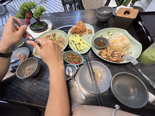 Ribs Pad Thai Stir fried long beans with Thai sambal Fried mushrooms Tom yum soup Grilled shrimps Grilled pork Honey ginger chicken wings