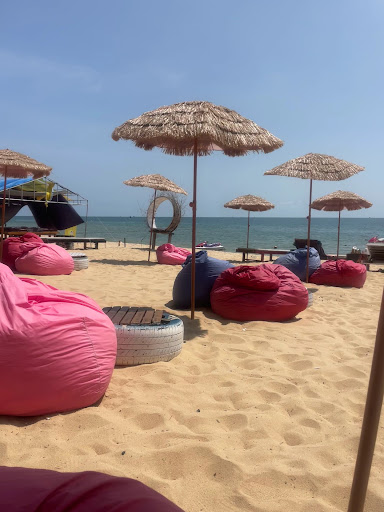 Upon arriving at 2:00 PM, we found ourselves as the sole patrons of the establishment. We indulged in burgers, which unfortunately fell short of our expectations. The beef burgers featured patties that were excessively thin, and the accompanying potato wedges were severely lacking in substance. My chicken burger patty deviated significantly from its intended appearance, resembling a minced, greasy, and thin piece of chicken. It is perplexing why they could not have prepared a deep-fried, breaded chicken breast. Despite its unnatural form, I succumbed to my appetite and consumed the burger - you could say, just like me with the fairer sex, this isn’t my first time eating meat that looks slightly unnatural. The beer prices, at 30k, were reasonably priced, which I found to be a pleasant surprise. The location, situated by the sea, exuded a sense of grandeur. We spent the remainder of the afternoon sunbathing and enjoying a steady flow of beers. My post-sunbathing physique is satisfactory, as I can confidently report that I have achieved a flawless tan with no tan lines, wink. The restrooms were adequate, although the building itself required some attention to maintenance. Tables and chairs were in a state of disrepair, and various fixtures were showing signs of wear and tear. However, I’m not unfamiliar with sitting on wobbly limp wood. The staff’s service was satisfactory, although their English proficiency was limited. However, we should not hold this against them, as the French got here before us. Overall, if you seek a tranquil and unassuming bar, this establishment may be the perfect choice. Go forth, joyful hugs...