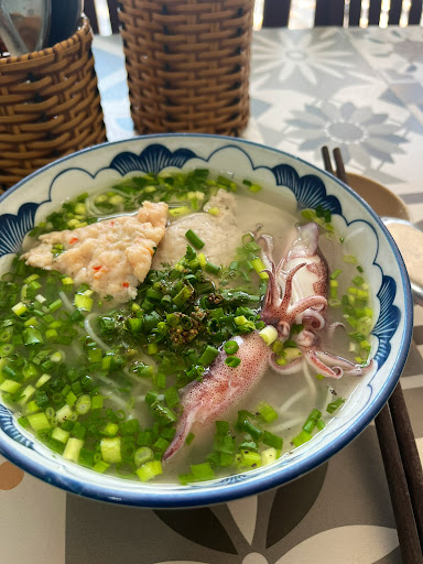 Read moreYou can eat local seafood noodles. They only speak Vietnamese. There are many Vietnamese customers. Popular restaurant. The soup is salty with shrimp cake and squid. 50K isn't expensive, but it feels a bit more expensive than a local restaurant nearby. It might be a tourist price, but I don't care. restaurant is dirty and has dogs but...