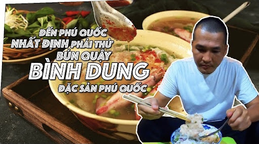 quán Bún Quậy Bình Dung nằm bên trong con hẻm của làng chài ở phú quốc. món Bún Quậy Phú Quốc là món ăn địa phương do người dân Phú Quốc gây dựng nên và đặt tên, có nguồn gốc từ Bún Tôm Bình Định, chính xác hơn nữa là món ăn này xuất phát từ phù mỹ bình định, nó được gọi là bún tôm. Khi chế biến và khi ăn có những động tác liên quan đến "QUẬY" nên từ đó cái tên Bún Quậy ra đời, được xem là một đặc sản Phú Quốc rất sứng đáng để trải nghiệm món ăn này khi chúng ta đi du lịch phú quốc. Là món ăn sạch, an toàn, không dầu mỡ, không hóa chất. tại quán Bún Quậy Bình Dung ở phú quốc các bạn có thể tận mắt được xem trực tiếp cách họ chế biết từ chả cá thu, chả cá trích, chả tôm và tạo trực tiếp những sợi bún gạo tươi ngon. còn về chất lượng món Bún Quậy Bình Dung ở phú quốc nếu các bạn không chê về cơ sở vật chất của quán thì gia đình Kbntrippy xin đảm bảo về chất lượng chế biết ra tô Bún Quậy Phú Quốc này cự kỳ chất lượng từ chả cá, chả tôm, mực ngay cả sợi bún gạo rất là tươi và ngon các bạn nhé.