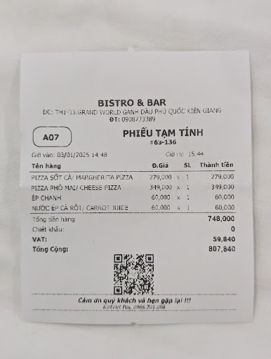 We feel scammed. The price is exceptionally high (in Europe you get better and cheaper pizza), plus we noticed with the bill that they charge VAT extra.