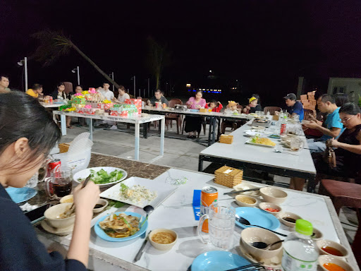 đặc biệt, không gian yên bình với hướng nhìn ra biển xanh ngắm hoàng hôn là điểm đặc biệt tại nhà hàng. đây là nơi lý tưởng để thưởng thức bữa ăn độc đáo cùng gia đình, bạn bè hoặc tổ chức các buổi tiệc trên bờ biển.