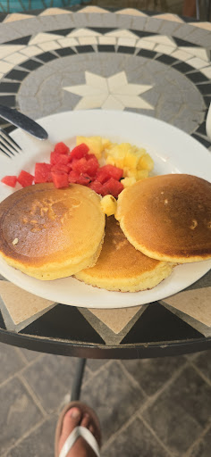 Read more(рус ниже) The entrance on the google map is located incorrectly, the café itself is at the inner part of the building, so you need to go around this building to see the café sign and tables. Because it was the only option we had to go here. However – the rice with seafood was cooked with crab sticks (not the real crab). Sorry , but this is such a shame for countries like this to serve that Fruits that go with pancakes were cut in small pieces, so I wondered what if that was left from other customers and put onto the new table. The egg breakfast had one slice of bacon, cut in 2 halves. Funny.