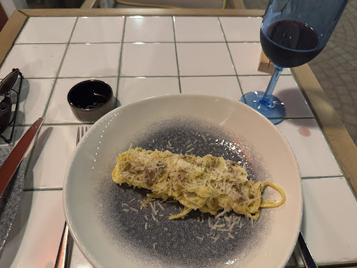 Pasta, al dented? Just a tad over cooked, still ok. Guanciale, crispy, salty, smokey, not over powering, great choice. But the sauce 🤌🏼, it is supposed to be the soul of carbonara, perhaps the pecorino is not a well aged pecorino where the flavour was way too mild. Unfortunately that was the make or break for me. Instead of ordering dessert, I was feeling unsatisfied and had another glass of Chianti and heading for local cheap eats…