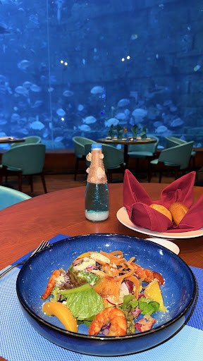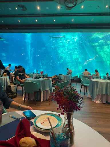 Read moreThe food was good (set menu), the view was very nice, but what ruined our experience was the service and the stuff, they didn’t welcome us properly and it seemed like they got very pissed off when they knew that we have dinner booked and paid for already with our tickets (they scanned it more than 3 times), they wanted us to order the food while standing on the door then go sit on the table as if we would run away (they didn’t let us to sit on the table near the aquarium although it’s empty), snd they don’t speak English properly. Overall this restaurant is only for watching fishes experience while eating...
