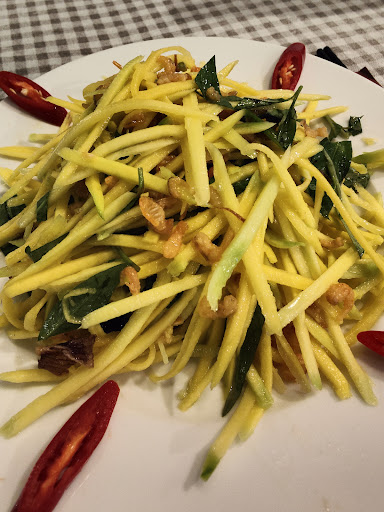 Large restaurant, Mango salad & Fried Rice seafood (both VND 150K) were okay/edible, but with little "content" in the rice (smallest seafood parts, nothing nicely arranged) and the salad was also not very lush for the price. Really nothing special, not as authentic as hoped, rather very tourist-style, so we felt it there. Looking back on a week on site actually the worst (most normal, boring) dinner we had, in addition more expensive than in other places. You can do that, but if you really want to experience authenticity, maybe better go somewhere else. Service was okay so far, but felt more focused on regular customers (?), who also ate with us in the restaurant. Perhaps a very subjective snapshot, but such a thing is never very pleasant, because we are definitely not "unpleasant" guests. Conclusion: Nothing for us and...