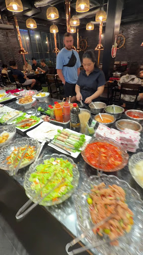 Well, its a big restaurant with a buffet for BBQ and Hotpot. You pay at the beginning and can leave when you're done. Seafood buffet is really nice, there is a lot of beef and pork as well, but it was quite hard, almost no chicken. A few hot dishes and a salad bar, two types of "sushi" who probably dont deserve the name sushi... A variety of sauces and you can chop your own chili, garlic etc. Fruits and local desserts - Its a great opportunity to try out some stuff, and I think everyone can find something there even if you do not like everything. The staff seemed a bit stressed but were very nice and helpful, they grill stuff for you and clear the table. When we came it was very full and loud, but it got better over time The only negative thing were other customers who were trying food directly from...