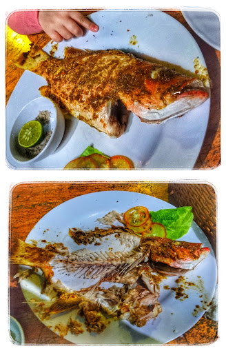 I came across this place when walking along the beach after watching the sunset. They were just getting ready for a seafood barbeque. We choose the set menu for 2, which consisted of 2 grilled squids and a whole fish, cooked in foil on the barbeque, and 2 bottles of beer. The dinner was lovely and we enjoyed it sitting at a table at the waterline....overlooking the sea and the fishing boat's lights in the distance. One of the most memorable Christmas...