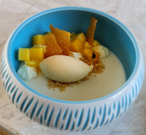 I loved everything about the restaurant - view decor, plating, menu …. The vibes are great and loved that we made plans to visit the most expensive hotel in Phu quoc island for a Lunch. The menu is more Italian not a big menu but one of quality. The plates they use are from kevala a Bali based potter who creates plates for major hotel brands and loved the concept they produced for Ocean Club - reminding me of ocean and corals. They served better coffee than most places in Phu quoc, and started our meal with crispy and soft bread. Ordered the aglio olio ( without the mixed crumble) which knocked our socks off. Thought the Parmesan cream would make the pasta too creamy but it was just the right combination, well peppered and made even better with their chili pepper flakes if you like spicy. We loved it so much we got seconds. The Frutti de Mare also was a good tomato based pasta with fresh seafood. The chicken with lemon sauce was almost like fish and chips with the bite of chicken. Sauce was refreshing but not too sweet nor sour. We also got the gambas which was served with a rich prawn broth topped with Spanish bacon bits. Huge prawns and very succulent. We ended our meal with two beautiful plates of desert - a yuzu tart and a coconut pudding. Light and absolutely up my palette. Great meal and one of the top restaurants we tried....