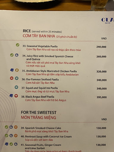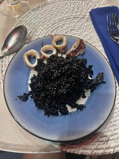 We tried a range of tapas dishes, all very small (like VERY small), very overpriced. Between 5 people we spent around 2.5 million and left still hungry. We actually had to go have a second dinner. The biggest disappointment was the paella which was suppose to be a big sharing dish. The paella was mushy rice with 4 what tasted like frozen overcooked prawns, there was not enough to have 1 minuscule prawn each! When we are literally eating looking at the ocean you can imagine the sadness that swept over the table.