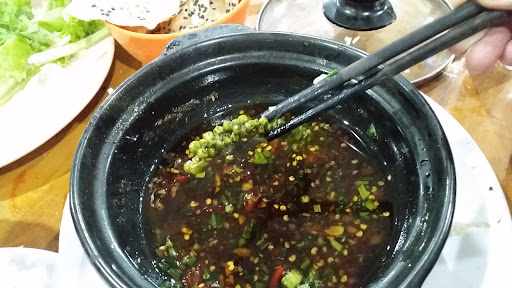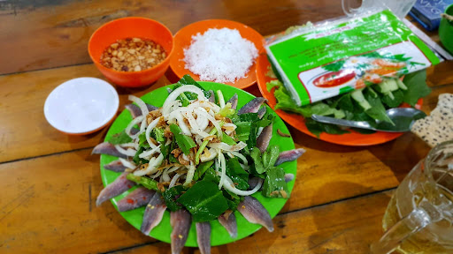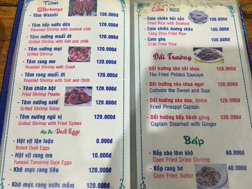 We had fun because we are western tourists and this place was a madhouse adventure that really shouldn't be missed. But the food was mediocre and the prices high. We were entertained by everything going on! We practically drove inside the restaurant to park our motorbikes! Families were sitting on kiddie size plastic chairs around low tables in this warehouse sized restaurant. You can't hear anyone for the noise, and the garbage was piled up under and around the tables that were occupied (but tables were cleaned quickly when the guests left). Some tables had a crate or 2 of beer that was slowly being consumed. And the lady selling the Tiger beer was dressed in uniform, making sure all her customers had buckets of ice on the floor next to the table. A street vendor stopped by our table to sell us fruit and rice crackers. I couldn't understand how they let street vendors into a restaurant. Our local host says he calls this place an eatery rather than a restaurant, and the street vendors are ok. So we bought a huge rice cracker to share. We were given one menu for the table (4 people had to share a menu). I wanted a vegetarian dish, but my friends went all out on the seafood. Various dishes started appearing on our table, none of which we had ordered, but our order didn't appear until we got up to ask for it. And we finally cancelled one of the items we ordered because it was simply too late already. Meanwhile the World Cup was playing on the huge TV screen hanging from the ceiling in the middle of the structure, while a street magician started a magic show by the tables near the entrance, after which he made a round of the tables selling something. When our bill arrived we had to check it carefully and if course it was full of mistakes and we were grossly overcharged. Thank goodness our Vietnamese friends were with us. We could not have navigated this restaurant in our own. So as I said we took the whole experience as a fun local adventure. But be prepared for the worst if you plan to...