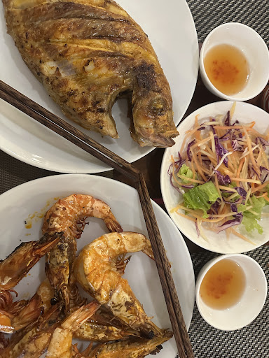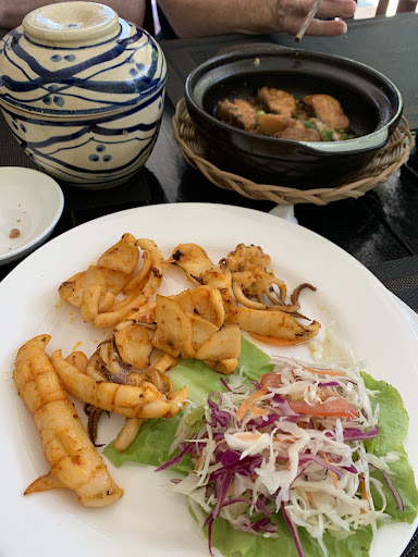 It took about 25 minutes to serve the first dishes (grilled squid and pepper fish) which were very good so at that point we were happy to wait patiently for the grilled market fish. We were told it was cooking and would just be a few minutes, however it wasn't served until 30 minutes later. Not only that but the fish was mushy and flavourless, and the menu advised it was served with rice paper to make rolls which wasn't offered until we asked about it.