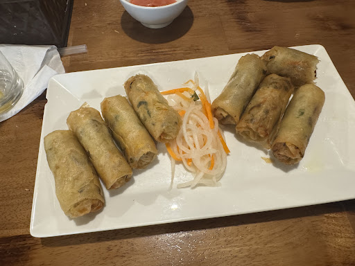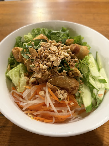 The menu offers a wide variety of dishes, including several vegan options. The vegan pho was out of this world, and the summer rolls were another highlight. It’s honestly the best and most authentic Vietnamese food we’ve had. Because we came so often, the lovely ladies even surprised us with a free tea.