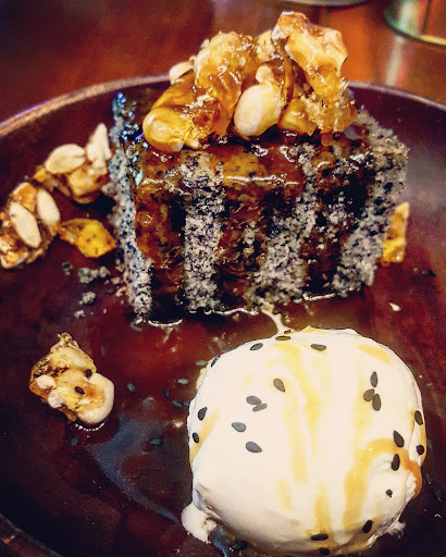 Sesame cake and coconut ice cream: 10 out of 10, one of the best desserts I've ever had. The sesame cake was a work of art, spungy, fluffy and full of flavour. The coconut ice cream light and yet flavorful. The crunchy honey peanuts gave a great texture to the dish. Loved it all the way.