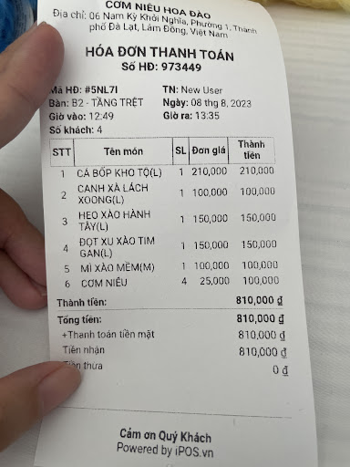Read moreNếu có thể đánh giá âm thì mình cũng cho âm luôn. Nhân viên thì chửi khách, mặt mày nhăn nhó, cơm bình thường và không hề xứng đáng với giá. Mình gọi 4 món, kêu cơm niêu họ mang cơm thố. Mang được 2 món là thố cơm và thịt xào ra trước. Tụi mình đợi hơn nửa tiếng, ăn hết thịt, cơm thì đã nguội mà món thứ 2 vẫn chưa mang ra, không lẽ ngồi ăn cơm không. Nhân viên dọn bàn kế bên thấy tụi mình ngồi đợi rồi nói tụi mình còn có 1 món (trong khi còn thiếu 2 món) và có thái độ đuổi khách, tính tiền cho tụi mình và không hề có hoá đơn hay lời xin lỗi. Nếu tài xế có giới thiệu món này thì mọi người đừng vào nhà, ở đây bọn họ cấu kết với nhau cả rồi, mình là nạn nhân đây. Bỏ 190k để ăn dĩa thịt bằng bàn tay, thố cơm chưa ăn được bao nhiêu vì thiếu đồ ăn còn bị chửi. Thật sự rất...