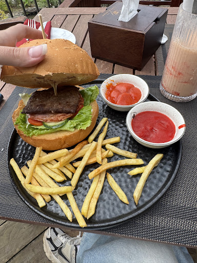 Read moreКрасивый ресторан , но некоторые блюда разочаровывают. Приходили сюда 2 раза. В первый раз все было отлично, не считая одного блюда. Заказывали гребешки и курицу. Гребешки были вкусными и соус отличный. Порция с курицей была довольно маленькой и к ней положили всего 3 дольки картошки. Во второй раз заказали бургер и утку. Бургер это просто смешно , лучше бы это блюдо убрали с меню , булочка огромная , котлета очень маленькая , на вкус один хлеб. Мы брали special burger и единственное отличие от обычного beef burgera это маленький кусочек ветчины. Утка была довольно старой и имела свой специфический вкус. На удивление порция утки была больше чем курицы. Заведение не плохое но...