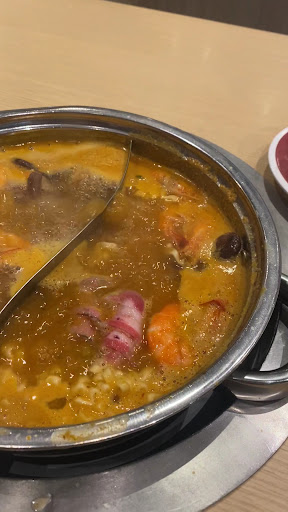 Lần đầu tôi ghé ăn, không gian khá đẹp và có một chút gì đó mang hướng truyền thống và hiện đại. Điều đặc biệt nhất có lẽ là cái băng chuyền rất dài nằm ngay giữa nhà hàng với rất nhiều đồ ăn đi kèm lẩu đa dạng (rau, viên thả, các loại thịt).