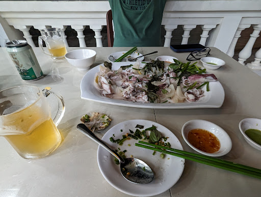 Read moreNhà mình đi 14 người chưa đặt bàn trước. Lúc đến thì nhân viên xếp cho mình 1 bàn trên lầu view biển, nhưng ngay sau đó được 1 bạn (chắc không phải nhân viên vì bạn này kiểu rất thái độ với khách và bạn nhân viên đang xếp bàn cho mình) nói bàn này đã được đặt trước và dời gia đình mình xuống phòng máy lạnh phụ thu 50k. Nói thật là máy lạnh quá tệ luôn, nóng và bí bách cực kì. Cũng chính bạn là người order cho bàn mình, menu thì nhiều món lắm nhưng hỏi món nào là món đó không phục vụ. Và đặc biệt chỉ order 1 lần và hối khách order lẹ vì khách đông quá. Thức ăn thì lên lâu, đợi mỗi món tầm 30p trong khi mình chỉ order các món khá đơn giản như cơm chiên, mì xào,... và thái độ phục vụ thì CỰC KÌ CỰC KÌ TỆ khi gia đình mình có order thêm 1 dĩa cơm chiên và nhận được câu trả lời sau đó là lúc đầu bếp nhận món nhưng giờ khách đông quá nên từ chối phục vụ !@! Mình cũng làm F&B nên hiểu việc đông khách khó quản lý là chuyện hiển nhiên, nhưng để nói ra câu đó trước mặt khách thật sự không chấp nhận được. Chất lượng món ăn ok nhưng tiếc là thái độ phục vụ quá kém khiến mình không thể quay lại lần 2 và cũng không muốn giới thiệu thêm cho ai...
