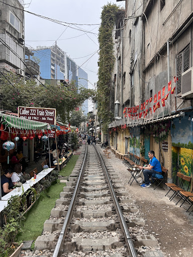 The "southern" side of the rails is little bit out of the centre but trains come more often. That's the train street you should go to. Grab a grab 😉 They have a time table of the trains coming. So, if you're there too early, I suggest to go wandering the streets around. It is not turisty and you'll find it out by the prices of everything: food, clothes and I found even a local street bar who served little Bia Hoi (0.3 l draft beer)...