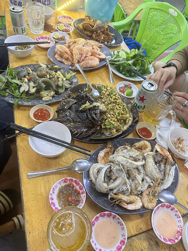Quán sai địa chỉ so với google maps(quán nằm đối diện bờ kè) nhưng quá bức xúc nên phải tìm cho ra để đánh giá Vừa đi mùng 4 tết năm nay sợ luôn. Quán không sạch sẽ, nhân viên cũng lơ là, không chỉ chỗ đỗ xe cho khách. Dứoi chân bàn ăn toàn vỏ hải sản nhớt nhợt lỡ vô nên nhà mình ăn luôn vì quán nào cũng hết chỗ. Đồ ăn mắc hơn so với những quán khác nhưng lại rất ít, không tươi. Đồ ăn ra lâu kêu hồi lại tính tiền thì cho ngồi đợi nhét thêm món đó Hàu nướng phô mai(phô mai nhìn bở bở như sữa chua tách nước), hàu hấp rất dở! Tối về mẹ mình đi tiêu chảy 10 lần 1 lần rồi thôi, để cả nhà vào đánh giá 1 sao cho...