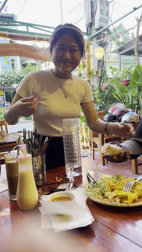 Read moreI really like the vibe of this place. I came here twice on a Sunday, once in the morning for breakfast, then in the evening for a few hours. I really liked the lighted-up lanterns in the morning and the calm, peaceful vibe during breakfast. There was no one else at breakfast. I had a bowl of muesli with fresh milk and yogurt. It was really refreshing, especially with the mango, and very delicious. The omelette with cheese and fresh warm baguette was good as well. In the evening, the place started to fill up after 6 PM with foreign tourists. I had the special Banh Xeo and it was pretty good. The fried noodles with chicken were decent. I liked their drinks as well. The B52 was no-nonsense. I had the chocolate smoothie with Baileys, as well as the hot chocolate with Baileys as well, and they were both really good. The prices are not very high and the service is great. The servers are very friendly and welcoming. Would definitely...