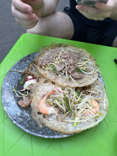 wow, the banh xeo are really something – crisp, juicy, and with lots of toppings. 16k each (not sure, but that's what my average was), which is well worth it (banh xeo tom for example came with four big shrimps). atmosphere? plastic chairs in a sea of trash and a rather relaxed approach to hygiene, but that is to be expected at this...