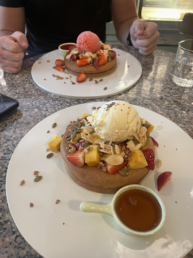 Read moreAmazing cafe Caramel yogurt banana smoothie is delicious yummy The pancakes and fruit were delicious really lovely atmosphere very clean cafe staff are really kind and lovely 💜 we will def come back Had a fresh made vegetable detox juice Highly recommend people to come take a visit for coffee juices smoothies...