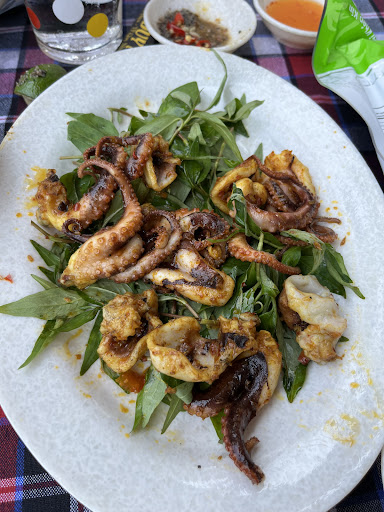 The kitchen is incapable of serving when the restaurant is crowded. 20 minutes after our order, the first dish, which is 4 undercooked small oysters, was served. Afterwards, 3 sea urchins one of which had nothing inside, the rest had just a little bit of roe (you will need a magnifying glass to see where it is). 45k VND (~2$) each is definitely not a reasonable price here. Squid fried with garlic is baby squid with the amount of garlic surpassing squid.