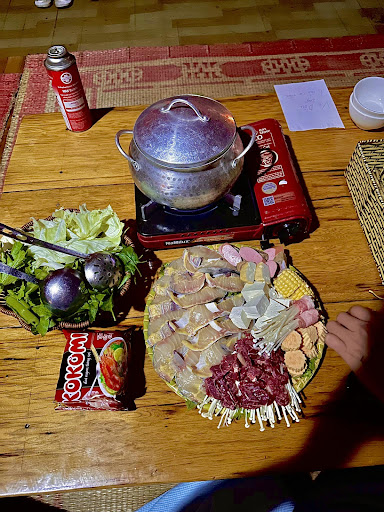 Mình lần đầu tiên đến Tà Xùa và chọn ở lại 3 hôm thì ăn tối ở đây 3 đêm luôn (phải đặt trước nha, mình đặt qua facebook). Có 1 hôm thứ 7 cúp điện, tụi mình ăn lẩu cá tầm trên tầng 2, không khí bao vui, các bàn đối diện thắp đèn cầy, mấy cô mấy chú liên hoan tiệc nhộn nhịp cực, cái không khí đó khi về lại thành phố mình cứ bị lưu luyến, hoài niệm mãi thôi. Nói về đồ ăn ở đây thì khỏi chê, rất hợp khẩu vị với tụi mình, phần ăn rất nhiều và rất ngon, mình bị mê chẩm chéo ướt ở đây. Về nhân viên và cách phục vụ thì chỉ có siêu tận tình, siêu nhanh nhẹn. Nhờ cái không khí cộng thêm những con người như thế này mà chuyến đi Tà Xùa của mình thật thư giãn, đáng nhớ và mình đã luôn muốn quay lại Tà Xùa thêm...