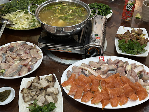 You will like this restaurant. We ordered 3 dishes, the pork fried with Mắc Mật leave, the fish cooked sour taste with Bamboo sprout and boiled green vegetables , all tasted super delicious. They have many other dishes in the menu we have not tried, but eager to taste food here more. The prices are good compared to big cities as Hochiminh city or Hanoi. The location is just outside of Mường Thanh Hotel, the biggest hotel in Mộc Châu town, on main road, so very convenient. The shop is built by wood, looks ancient. I think they can improve the branding in front of the restaurant so to be...