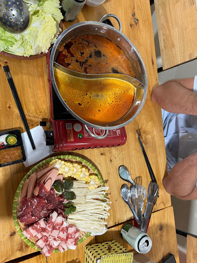 We got Tom Yum and sichuan hot pot mixed. Highly recommend the vegetables (a full head of cabbage that soaks up all the flavour at the end) and all the types of beef and the enochi mushrooms).
