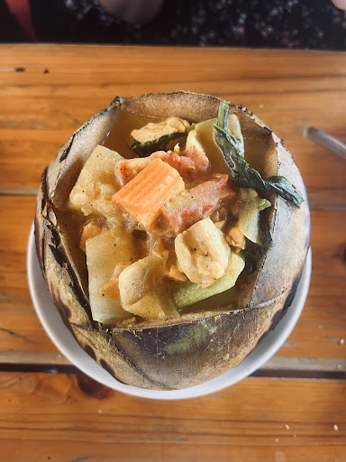 We initially missed the famous coconut chicken curry we’d read about in other reviews, but decided to try it anyway — and we were so glad we did! Its aroma and flavour brought back memories of traditional cooking from our homeland and in the end we also scooped out the tender coconut flesh, which was just as tasty.