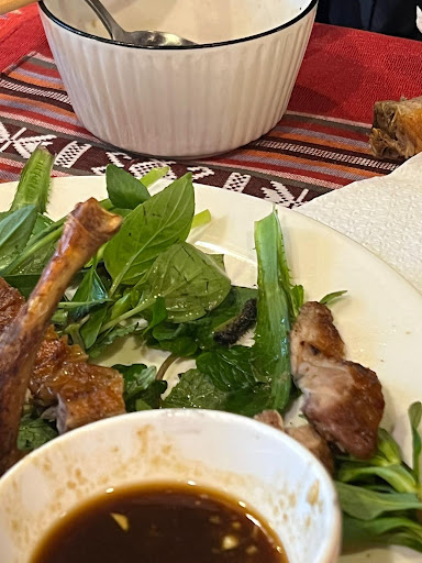 My friends and I went to this restaurant last Sunday after lunch hour, ordered a few dishes including this roasted duck with honey. Only until we ate a few pieces of the duck, then we saw this black worm moving at the bottom, in the leaves??!! It was still alive, moving and was eating the leaves ( wish I could upload the video but google didn’t allow)?!!! We immediately questioned the waitress and she just took the plate away, came back after around 10 minutes and said it was free, but didn’t even explain the situation and honestly, didn’t seem very sincere. The hygiene of the kitchen was a big concern for sure as the fact that the worm was still alive, it was apparent they didn’t even bother to wash the leaves? And the baskets with the veggies behind the kitchen were either super near to the floor or at the very top near the ceiling, which was very dirty as well. In the end when paying, the ladies (whom i assume were more like the owners or at least restaurant manager level) were not even there and when we wanted to question their hygiene and question the bill, we couldn’t even communicate as the person could not speak English.