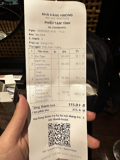 Read moreI had the chance to try Hmong Restaurant while I was in Sapa. I ordered the beef pho, fried spring rolls, and chicken curry served inside a coconut.