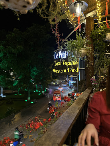 I used the Le Petit Gecko's amazing restaurant. Located on two floors of a pretty and colourful building near the Notre Dame du Rosary, the restaurant is in the thick of the tourist district and close to the Sapa Funicular Railway Station. The dining space is high on aesthetics, ambience and colour. There's outdoor seating on both the floors. The space, whether outdoors or indoors is equally enchanting. The first floor balcony has potted hanging plants and overlooks the road below and the amphitheater and the Sapa Station nearby. It's a very pretty place to dine. The first floor indoor space with a huge glass window separating it from the balcony, is extremely colourful with a ceiling of wood and local textiles. There's local textiles on the tables and sofas as well. The ambience is enhanced by the wicker basket lamps with warm lights hanging above the tables. Their reflection on the glass tops of the tables is entrancing. Le Petit Gecko has a vegetarian section on the menu and mentions its vegetarian creds prominently on the signage too. I ordered an eggplant curry with rice, a local specialty, for lunch and an apple pie with icecream for dessert. The eggplant was delectable and I chose to eat with chopsticks, the better to enjoy every tiny morsel. The apple pie was freshly baked. The Le Petit Gecko grows on you, the longer you linger. A restaurant that's more than just the sum total of its food...
